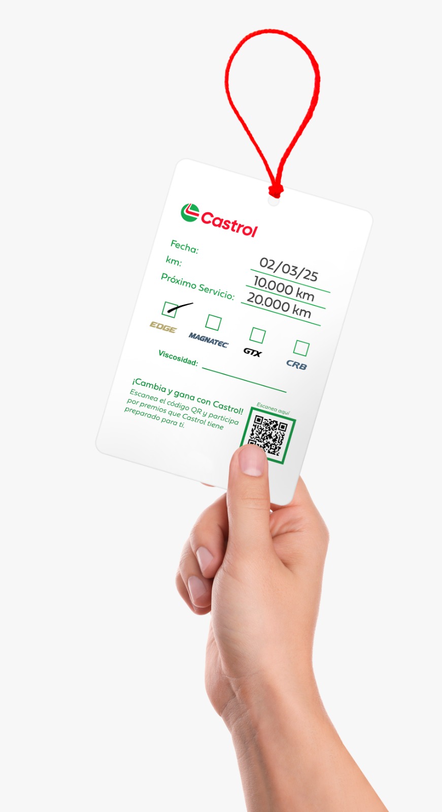 Registrando tu tarjeta de cambio de aceite Castrol, podrás participar en todos los sorteos semanales que estaremos realizando. Cada tarjeta participa por hasta 3 meses*, desde su fecha de registro, ¡Lo que te da más posibilidades de ganar!